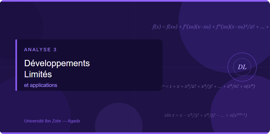 Ce cours propose une exploration interactive des développements limités et de la formule de Taylor. À travers des visualisations dynamiques et des activités H5P, l’étudiant développe une compréhension intuitive de l’approximation locale des fonctions.